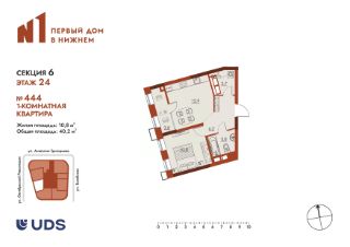 Продается 1-комн. квартира на 25-м этаже в строящемся проекте премиум-класса GloraX Premium Черниговская. Общая площадь лота составляет 44,42 кв. м, из которых 10,70 кв. м отведено под жилую и 23,38 кв. м под кухонную зону. Номер квартиры - 498.Преимущества квартиры:С лоджией - Квартиры премиум-класса у воды- Первая береговая линия. Изумительные виды на Стрелку и слияние Оки и Волги- Панорамные окна во всех квартирах- 11 минут до Кремля, 5 мин до Нижневолжской набережной- Дизайнерские лобби со вторым светом- Двухуровневый отапливаемый паркинг на 350 м\м- Приватный благоустроенный двор с видеонаблюдением только для резидентов- Современные детские площадки, зоны спокойного отдыха, зона для занятия спортом, зеленые кабинеты на свежем воздухе- Детские сады и школы в шаговой доступности- Собственный комьюнити-центр с коворкингом, детской комнатой, залом для фитнеса и кофе-поинтом.- Умный Дом и Умная Квартира- Ресторанный кластер в ЖК- Келлеры для хранения - Коммерческие помещения на 1 этаже GloraX Premium Черниговская - новый жилой комплекс премиум класса в историческом центре Нижнего Новгорода, в котором объединились лаконичность архитектурной мысли, технологичность решений и внимание к деталям, присущее всем проектам компании GloraX. Проект для рационалистов, придающих большое внимание собственному комфорту и современным технологиямGloraX Premium Черниговская это высшая форма Нижнего Новгорода. Инновационные решения и сервисы, закрытые дворы в стилобате с уютными детскими площадками, гастро-кластер, комьюнити-центр и дизайнерские лобби здесь все создано для максимального комфорта каждого жителя. Приватное пространство внутреннего двора с тактильными тропами, с собственным садами, камерными зелеными кабинетами для работы и отдыха, детскими площадками для разных возрастов и местами для занятия спортом создает неповторимую атмосферу безмятежности и спокойствия.GloraX Premium Черниговская возвращает набережной и пространству вокруг исторический статус, привлекая тех, кто готов развиваться вместе с городом. Дорога до любимейшего променада нижегородцев Нижневолжской набережной займет всего 10 минут пешком, до ближайшей станции метро Горьковская 10 минут на автомобиле. Попасть на главную площадь города, Чкаловскую лестницу и в Кремль на машине за 11 мин? Легко! И всего 48 минут займет путь до международного аэропорта имени Чкалова, что станет неоспоримым преимуществом для тех, кто часто летает в командировки.В GloraX Premium Черниговская доступен широкий выбор планировочных решений от небольших уютных студий площадью 28,3 м2 до двухуровневых квартир с террасами площадью до 188,7 м2 и потрясающими видами на Нижегородские закаты. Получить ключи и сразу переехать? Легко! Мы подготовили для вас чистовую отделку в двух стилях: в эко- минималистичном светлом и своременно-модернистском темном. Отдельной опцией можно даже дозаказать покраску стен в 4 трендовых цветах на выбор: агатовый серый, серебристо-серый, серый шелк и тонкий лен.