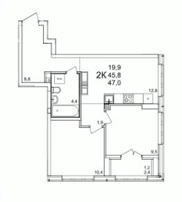 2-к квартира Показать на карте