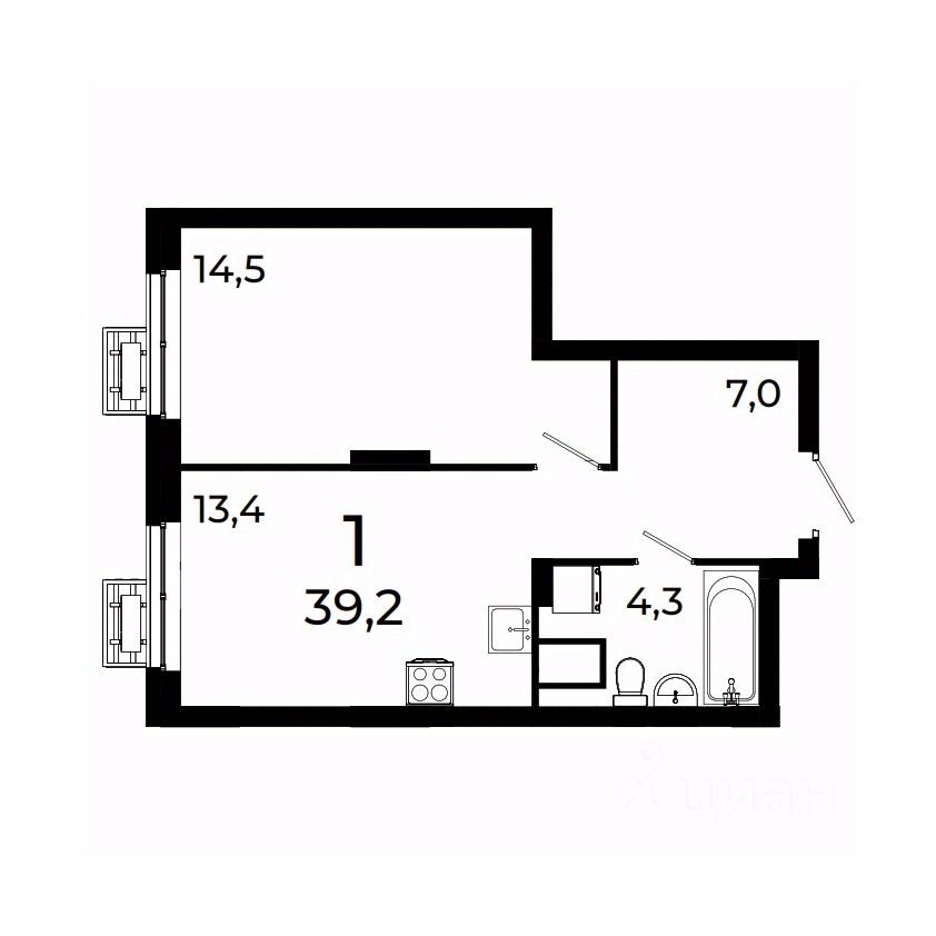 39 м² · Этаж 10 из 19