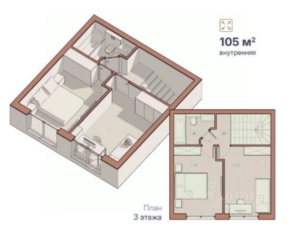 Таунхаус 105 кв.м. в три этажа с собственным участком земли и парковочным местом в собственности. На первом этаже дома - большая кухня-гостиная, место для отдыха на участке (1 сотка), терраса с гриль-зоной, и одно личное машиноместо. На втором этаже дома - просторный санузел с ванной, панорамное остекленение , кабинет с гардеробной (либо просторная мастер-спальня). На третьем этаже - две детские комнаты разной площади (либо спальня с вместительным местом для хранения) и еще один просторный санузел с ванной. Все коммуникации имеются, все централизованное. Есть такой же таунхаус с предчистовой отделкой, небольшая разница по цене. Таунхаус находится в закрытом поселке, с асфальтированными дорогами, с брусчаткой на парковках, с красивым ландшафтом и уличным освещением, каждый участок отдельно огорожен забором. В поселке есть места для отдыха, оптоволоконный интернет, видеонаблюдение территории и более 150 парковочных мест для гостей. У поселка есть собственная УК, очень комфортные коммунальные платежи. На территории есть собственный детский сад и скейт-площадка, зона уличных фитнес-тренажеров и футбольное поле, есть площадка для выгула собак. Поселок находится в престижном районе города, неподалеку две автобусные остановки, выезд на Казанское шоссе. В шаговой доступности различные магазины, ТЦ ''Индиго'', ''Фантастика'' и др., салоны красоты и пункты выдачи, кинотеатры и фитнес-центры, аптеки и мед.центры, две школы. Таунхаус подходит к покупке под любой тип расчета - наличные, ипотека. Условия льготной ипотеки - семейной и IT - действуют, помогу быстро собрать документы, одобрить и согласовать ипотеку в нескольких банках на выбор. По просмотрам - звоните, покажу таунхаус и территорию.
