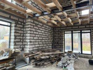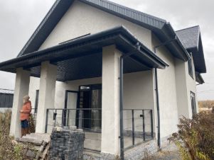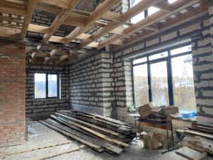 Продается дом, 285 м, два этажа, без внутренней отделки. Стены из газосиликатных блоков толщиной 40 см, кровля - мягкая черепица, пластиковые окна. Фундамент - монолитная утепленная плита. Все фасадные работы выполнены на 100 %. В дом заведено электричество, вода центральная. Канализация - каскад септиков. Все строительные работы осуществлялись профессиональной организацией с надзорным специалистом. Планировка: 4 комнаты, кухня-гостиная, 3 санузла, 3 кладовых, балкон, терраса, веранда, частично уложена брусчатка, забор с трех сторон, обустроена подпорная стенка. Для покупателя - ландшафтный проект в подарок. получены ТУ на подключение газа. торг