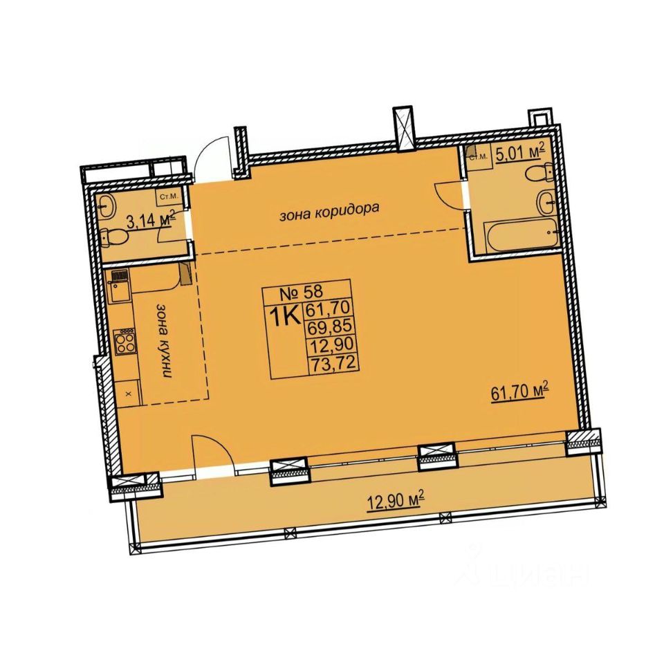 58 м² · Этаж 15 из 19