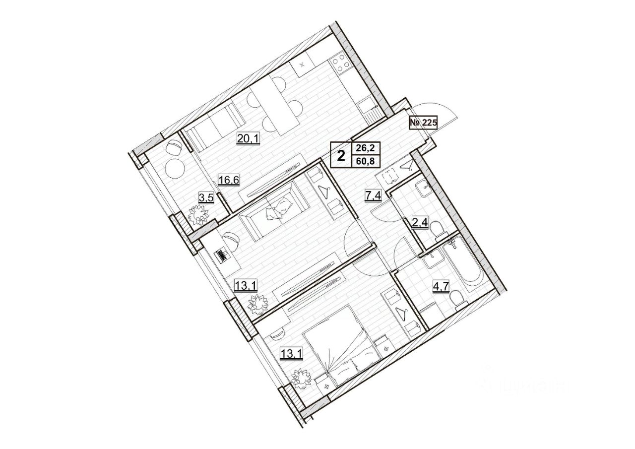 60 м² · Этаж 4 из 24