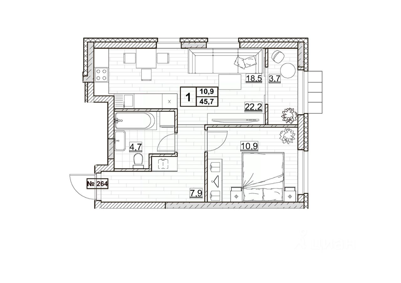 45 м² · Этаж 9 из 24