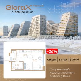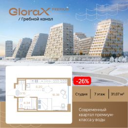 Продается квартира-студия на 6-м этаже в строящемся проекте премиум-класса GloraX Premium Гребной канал. Общая площадь лота составляет 31,07 кв. м, из которых 18,38 кв. м отведено под жилую и 5,20 кв. м под кухонную зону. Номер квартиры - 405.Преимущества квартиры:студия, вид во двор и на реку - Современная набережная с философией Slow-life, зонами медитации и амфитеатром у воды- Гастрокластер с акцентом на здоровое питание- Общественный центр со спортзалом, бассейном и супермаркетом- Детский плейхаб с нетиповыми площадками- Близость к центру города- Отапливаемые паркинги- Дизайнерское гранд-лобби со вторым светом и клубом резидентов- Приватные дворы на стилобате- Окна в пол- Умные замки с возможностью открытия двери с помощью отпечатка пальца или кодаGloraX Premium Гребной канал — это курортный Нижний. Современные кварталы премиум-класса у воды недалеко от центра города с философией slow-life. Концентрация на настоящем, забота о собственном физическом и ментальном здоровье, соблюдение баланса между трудом и отдыхом. Инфраструктура для активной и здоровой жизни, модный гастрокластер с особыми программами питания. Маловысотные дома с видами на реку и с фасадами в виде парусов. А рядом - многофункциональная набережная с променадом, зонами для медитации и йоги, упирающаяся в любимейшую пляжную зону всех нижегородцев и во все века прекрасная река. Гармоничная среда, дающая возможность услышать свой внутренний голос, понять свои истинные желания и чувства.GloraX Premium Гребной канал — это семейный Нижний. Два детских сада, школа, нетиповые детские площадки для разных возрастов. Экологичные материалы. Безопасность и видеонаблюдение. Простор для прогулок на многоуровневой набережной, велодорожки и релакс-зоны. Сложно представить лучше жизнь ваших детей.GloraX Premium Гребной канал это эксклюзивный Нижний с современной средой, в которой решения и внимание к деталям подчеркивают высокий статус и индивидуальность жителей. Приватные дворы на стилобатах, безбарьерная среда, IP домофоны, просмотр камер с домофона через мобильное приложение, системы ''Умный ЖК'' и отапливаемые паркинги. Дизайнерское гранд-лобби со вторым светом и клубом резидентов. Общественный центр сj спортзалом, бассейном, супермаркетом, кафе и рестораном.GloraX Premium Гребной канал это не координаты на карте, а внутреннее состояние. Идеальным оно становится тогда, когда все вокруг работает на ваше благополучие. GloraX Premium Гребной канал вырос в месте, на набережной Гребного канала, где Волга простирается вдоль горизонта, а из окон будущих резидентов открывается панорама на великолепие зеленых зон. А главное — всего 9 минут до центра Нижнего Новгорода и Кремля на авто. Редкое сочетание близости к деловой жизни города в атмосфере уединенного курорта. Рядом 2 остановки общественного транспорта, вертолетная площадка и речной вокзал. До международного аэропорта им. Чкалова 50 мин на авто.Цена указана при 100% оплате или стандартной ипотеке. Узнайте подробности в Отд