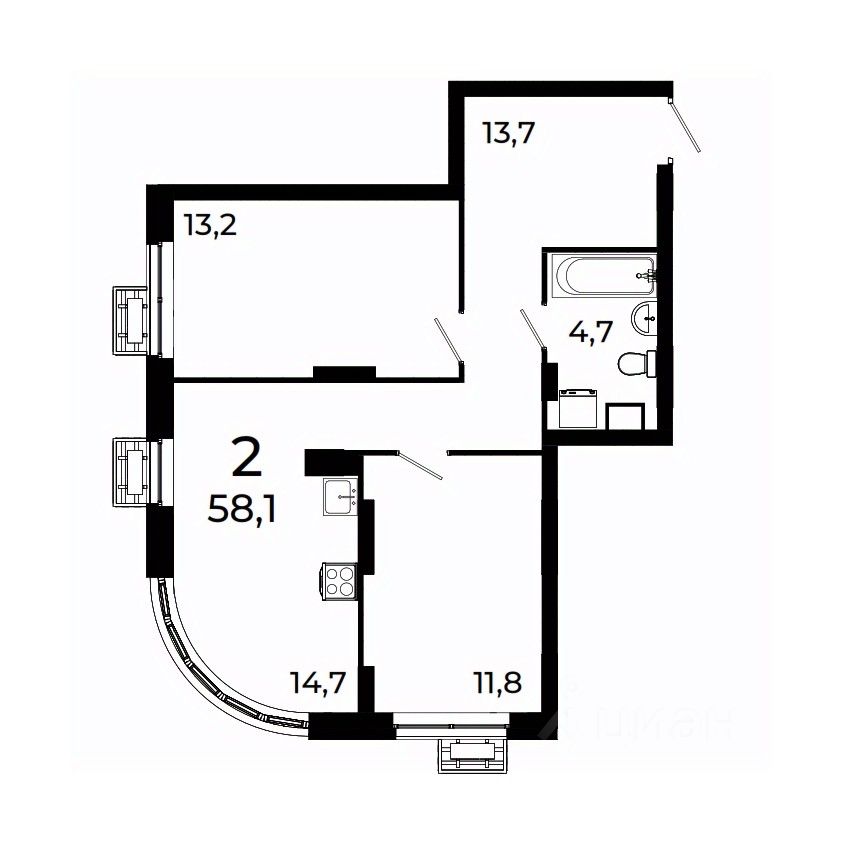 58 м² · Этаж 4 из 12