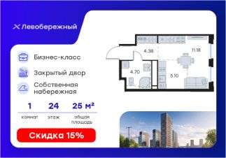Продается квартира-студия на 24-м этаже в строящемся проекте бизнес-класса Левобережный. Общая площадь лота составляет 25,36 кв. м, из которых 11,18 кв. м отведено под жилую и 5,10 кв. м под кухонную зону. Номер квартиры - 417.Преимущества квартиры:cтудия, высокий этаж, вид во двор - квартиры бизнес-класс на первой береговой линии Оки- уникальные планировки квартир с возможностю дозаказа разных вариантов отделки- собственная благоустроенная набережная с городским трейлом для пробежек и велопрогулок- семейный парк: рампы, скейтпарк, граффити для подростков- плейхаб рядом со школой с детскими площадками и стадионом - в зимнее время с катком.- велнес-парк с сухими фонтанам и релакс-зонами у воды- площадки для выгула собак- концепция благоустройства с закрытыми тихими дворами- полная инфраструктура (3 детских сада, школа, поликлиника, ФОК)- коммерческие помещения на 1 этажах- качественное изменение транспортной инфраструктуры в районе-комьюнити-центр для жителей проекта- модный гастрокластер- подземные и наземные паркингиЛевобережный - это масштабный проект в Нижнем Новгороде, созданный сделать жизнь левого берега и его людей принципиально новой. Это инновационный проект бизнес-класса, сочетающий в себе всё для современного уровня жизни: социальную и детскую инфраструктуру, комьюнити-центр и собственную набережную со спортивными и релакс-зонами, скейт-парк и гастро-кластер.Левобережный для тех, кто хочет жить всегда на первой линии. Это когда из твоего окна лучшие рассветы города, а твой берег новая точка притяжения для тех, кто любит спорт или фанат модных гастросетов. Это когда под окнами тихие зеленые дворики с игровыми площадками только для самых маленьких, а веселые игры заботливо вынесены в яркие плейхабы для тех, кто постарше. Это когда твой автомобиль ждет тебя на теплом паркинге, а сосед всегда с улыбкой встречает тебя на велодорожке у дома, это когда садик и школа в двух шагах, а у любимого питомца - специальная площадка в парке. Это когда летом петанк, а зимой каток. Это когда, утопая в рассветных лучах, любуешься Нижним со своего берега и кликаешь приложение GloraX, чтобы умный дом открыл шторы твоего дома для всей семьи.Левобережный квартал для тех, кто хочет жить современной активной жизнью в близком по духу комьюнити, ежедневно наполняться ресурсом, вдохновляясь рассветами и великой рекой, жить в гармонии с природой и технологиями, но на зрительном расстоянии от центра города.Левобережный всегда на первой линии!Цена указана при 100% оплате или стандартной ипотеке. Узнайте подробности в Отделе продаж.