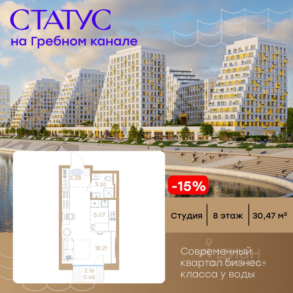 Продается квартира-студия на 8-м этаже в строящемся проекте бизнес-класса СТАТУС на Гребном канале. Общая площадь лота составляет 30,47 кв. м, из которых 18,21 кв. м отведено под жилую и 5,07 кв. м под кухонную зону. Номер квартиры - 70. Преимущества квартиры: студия, высокий этаж, вид на улицу и на реку, балкон - Современная набережная с философией Slow-life, зонами медитации и амфитеатром у воды - Гастрокластер с акцентом на здоровое питание - Общественный центр со спортзалом, бассейном и супермаркетом - Детский плейхаб с нетиповыми площадками - Близость к центру города - Отапливаемые паркинги - Дизайнерское гранд-лобби со вторым светом и клубом резидентов - Приватные дворы на стилобате - Окна в пол - Умные замки с возможностью открытия двери с помощью отпечатка пальца или кода СТАТУС на Гребном канале — это курортный Нижний. Современные кварталы премиум-класса у воды недалеко от центра города с философией slow-life. Концентрация на настоящем, забота о собственном физическом и ментальном здоровье, соблюдение баланса между трудом и отдыхом. Инфраструктура для активной и здоровой жизни, модный гастрокластер с особыми программами питания. Маловысотные дома с видами на реку и с фасадами в виде парусов. А рядом - многофункциональная набережная с променадом, зонами для медитации и йоги, упирающаяся в любимейшую пляжную зону всех нижегородцев и во все века прекрасная река. Гармоничная среда, дающая возможность услышать свой внутренний голос, понять свои истинные желания и чувства. СТАТУС на Гребном канале — это семейный Нижний. Два детских сада, школа, нетиповые детские площадки для разных возрастов. Экологичные материалы. Безопасность и видеонаблюдение. Простор для прогулок на многоуровневой набережной, велодорожки и релакс-зоны. Сложно представить лучше жизнь ваших детей. СТАТУС на Гребном канале это эксклюзивный Нижний с современной средой, в которой решения и внимание к деталям подчеркивают высокий статус и индивидуальность жителей. Приватные дворы на стилобатах, безбарьерная среда, IP домофоны, просмотр камер с домофона через мобильное приложение, системы ''Умный ЖК'' и отапливаемые паркинги. Дизайнерское гранд-лобби со вторым светом и клубом резидентов. Общественный центр сj спортзалом, бассейном, супермаркетом, кафе и рестораном. СТАТУС на Гребном канале - это не координаты на карте, а внутреннее состояние. Идеальным оно становится тогда, когда все вокруг работает на ваше благополучие. СТАТУС на Гребном канале вырос в месте, на набережной Гребного канала, где Волга простирается вдоль горизонта, а из окон будущих резидентов открывается панорама на великолепие зеленых зон. А главное — всего 9 минут до центра Нижнего Новгорода и Кремля на авто. Редкое сочетание близости к деловой жизни города в атмосфере уединенного курорта. Рядом 2 остановки общественного транспорта, вертолетная площадка и речной вокзал. До международного аэропорта им. Чкалова 50 мин на авто. Цена указана при 100% оплате или стандартной ипотеке. Узнайте подробности в Отде