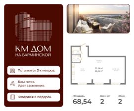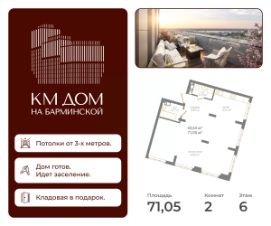 Продаётся квартира в готовом жилом комплексе бизнес-класса КМ Дом на Барминской. Дом введён в эксплуатацию, выдача ключей после сделки. Жить в КМ Доме на Барминской, значит чувствовать себя на вершине — весь город у ваших ног, а с высоты открываются поистине фантастические панорамы. Исторический центр, площадь трех церквей, виды на живописные изгибы Оки и Волги и утопающие в зелени Дятловы горы, яркие огни любимого города — все это только ваше. Позвольте себе больше и обретите дом с видом на любимый Нижний. КМ Дом на Барминской это: Высокие потолки Квартиры с потолками более 3 метров — создайте пространство, которое полностью отражает ваш стиль жизни. Виды, которые становятся частью интерьера Панорамные виды из окон, а также общая видовая терраса на крыше — редкий формат для центра города. Комфорт и безопасность высокого уровня Умный дом, бесключевой доступ по Face ID, видеонаблюдение, надежные лифты и дизайнерские входные группы — всё для спокойствия и приватности. Удобство каждый день Двухуровневый подземный паркинг, кладовые помещения, закрытый, благоустроенный тихий двор с зонами отдыха и детскими площадками. Идеальная локация Центр города: рядом кафе, рестораны, магазины, университеты, культурные пространства и строящийся ИТ-кампус ''Неймарк''. Удобная транспортная развязка, легко добраться в любую часть города. Комфорт для семей В шаговой доступности детские сады и школы. Рядом скоро откроется новый детский сад на 150 мест. Ваш новый дом готов. КМ Дом на Барминской — это возможность заехать сразу и начать жить в пространстве с панорамными видами и высоким уровнем комфорта.