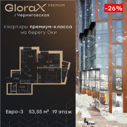 Продается 2-комн. квартира на 19-м этаже в строящемся проекте премиум-класса GloraX Premium Черниговская. Общая площадь лота составляет 53,55 кв. м, из которых 22,96 кв. м отведено под жилую и 19,12 кв. м под кухонную зону. Номер квартиры - 159.Преимущества квартиры: - Квартиры премиум-класса у воды- Первая береговая линия. Изумительные виды на Стрелку и слияние Оки и Волги- Панорамные окна во всех квартирах- 11 минут до Кремля, 5 мин до Нижневолжской набережной- Дизайнерские лобби со вторым светом- Двухуровневый отапливаемый паркинг на 350 м\м- Приватный благоустроенный двор с видеонаблюдением только для резидентов- Современные детские площадки, зоны спокойного отдыха, зона для занятия спортом, зеленые кабинеты на свежем воздухе- Детские сады и школы в шаговой доступности- Собственный комьюнити-центр с коворкингом, детской комнатой, залом для фитнеса и кофе-поинтом.- Умный Дом и Умная Квартира- Ресторанный кластер в ЖК- Келлеры для хранения - Коммерческие помещения на 1 этаже GloraX Premium Черниговская - новый жилой комплекс премиум класса в историческом центре Нижнего Новгорода, в котором объединились лаконичность архитектурной мысли, технологичность решений и внимание к деталям, присущее всем проектам компании GloraX. Проект для рационалистов, придающих большое внимание собственному комфорту и современным технологиямGloraX Premium Черниговская это высшая форма Нижнего Новгорода. Инновационные решения и сервисы, закрытые дворы в стилобате с уютными детскими площадками, гастро-кластер, комьюнити-центр и дизайнерские лобби здесь все создано для максимального комфорта каждого жителя. Приватное пространство внутреннего двора с тактильными тропами, с собственным садами, камерными зелеными кабинетами для работы и отдыха, детскими площадками для разных возрастов и местами для занятия спортом создает неповторимую атмосферу безмятежности и спокойствия.GloraX Premium Черниговская возвращает набережной и пространству вокруг исторический статус, привлекая тех, кто готов развиваться вместе с городом. Дорога до любимейшего променада нижегородцев Нижневолжской набережной займет всего 10 минут пешком, до ближайшей станции метро Горьковская 10 минут на автомобиле. Попасть на главную площадь города, Чкаловскую лестницу и в Кремль на машине за 11 мин? Легко! И всего 48 минут займет путь до международного аэропорта имени Чкалова, что станет неоспоримым преимуществом для тех, кто часто летает в командировки.В GloraX Premium Черниговская доступен широкий выбор планировочных решений от небольших уютных студий площадью 28,3 м2 до двухуровневых квартир с террасами площадью до 188,7 м2 и потрясающими видами на Нижегородские закаты. Получить ключи и сразу переехать? Легко! Мы подготовили для вас чистовую отделку в двух стилях: в эко- минималистичном светлом и своременно-модернистском темном. Отдельной опцией можно даже дозаказать покраску стен в 4 трендовых цветах на выбор: агатовый серый, серебристо-серый, серый шелк и тонкий лен.Цена ука