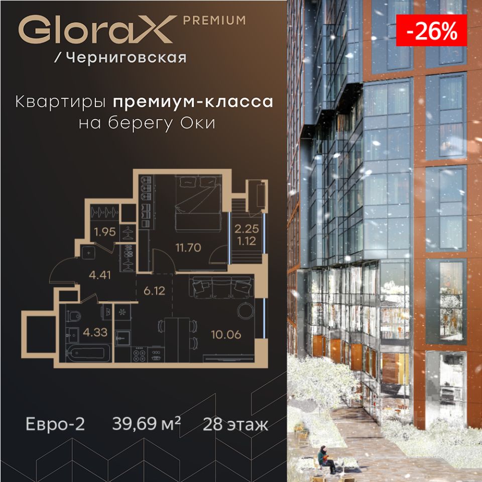 Продается 1-комн. квартира на 28-м этаже в строящемся проекте премиум-класса GloraX Premium Черниговская. Общая площадь лота составляет 39,69 кв. м, из которых 11,70 кв. м отведено под жилую и 16,18 кв. м под кухонную зону. Номер квартиры - 535. Преимущества квартиры: Гардеробная - Квартиры премиум-класса у воды - Первая береговая линия. Изумительные виды на Стрелку и слияние Оки и Волги - Панорамные окна во всех квартирах - 11 минут до Кремля, 5 мин до Нижневолжской набережной - Дизайнерские лобби со вторым светом - Двухуровневый отапливаемый паркинг на 350 м\м - Приватный благоустроенный двор с видеонаблюдением только для резидентов - Современные детские площадки, зоны спокойного отдыха, зона для занятия спортом, зеленые кабинеты на свежем воздухе - Детские сады и школы в шаговой доступности - Собственный комьюнити-центр с коворкингом, детской комнатой, залом для фитнеса и кофе-поинтом. - Умный Дом и Умная Квартира - Ресторанный кластер в ЖК - Келлеры для хранения - Коммерческие помещения на 1 этаже GloraX Premium Черниговская - новый жилой комплекс премиум класса в историческом центре Нижнего Новгорода, в котором объединились лаконичность архитектурной мысли, технологичность решений и внимание к деталям, присущее всем проектам компании GloraX. Проект для рационалистов, придающих большое внимание собственному комфорту и современным технологиям GloraX Premium Черниговская это высшая форма Нижнего Новгорода. Инновационные решения и сервисы, закрытые дворы в стилобате с уютными детскими площадками, гастро-кластер, комьюнити-центр и дизайнерские лобби здесь все создано для максимального комфорта каждого жителя. Приватное пространство внутреннего двора с тактильными тропами, с собственным садами, камерными зелеными кабинетами для работы и отдыха, детскими площадками для разных возрастов и местами для занятия спортом создает неповторимую атмосферу безмятежности и спокойствия. GloraX Premium Черниговская возвращает набережной и пространству вокруг исторический статус, привлекая тех, кто готов развиваться вместе с городом. Дорога до любимейшего променада нижегородцев Нижневолжской набережной займет всего 10 минут пешком, до ближайшей станции метро Горьковская 10 минут на автомобиле. Попасть на главную площадь города, Чкаловскую лестницу и в Кремль на машине за 11 мин? Легко! И всего 48 минут займет путь до международного аэропорта имени Чкалова, что станет неоспоримым преимуществом для тех, кто часто летает в командировки. В GloraX Premium Черниговская доступен широкий выбор планировочных решений от небольших уютных студий площадью 28,3 м2 до двухуровневых квартир с террасами площадью до 188,7 м2 и потрясающими видами на Нижегородские закаты. Получить ключи и сразу переехать? Легко! Мы подготовили для вас чистовую отделку в двух стилях: в эко- минималистичном светлом и своременно-модернистском темном. Отдельной опцией можно даже дозаказать покраску стен в 4 трендовых цветах на выбор: агатовый серый, серебристо-серый, серый шелк и тонкий лен