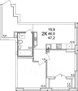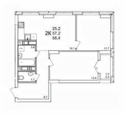 2-к квартира Показать на карте