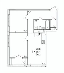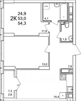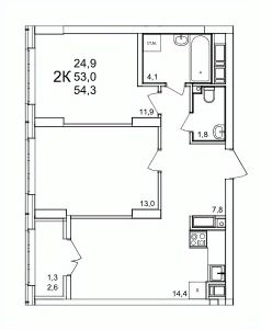 54 м2