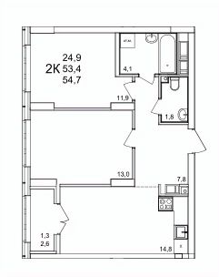 Продаётся 2-комнатная квартира в строящемся доме (54), срок сдачи: III-кв. 2027, общей площадью 47.9 кв.м., на 2 этаже. Расположение, транспортная доступность Жилой комплекс ''КМ Анкудиновский парк'' - это микрорайон, в состав которого входит 27 монолитно-кирпичных домов эконом-класса высотой 19-35 этажей, а также разнообразная инфраструктура. Жилой массив размещается на территории площадью 50 гектаров. Комплекс находится за пределами Нижнего Новгорода, в Кстовском районе, около деревни Анкудиновка. Город рядом - до него всего 6 километров. Без пробок до центральной части Нижнего Новгорода от комплекса можно добраться всего за двадцать минут. Поблизости находится улица Ларина, по которой можно быстро выехать на проспект Гагарина, ведущий в центр города. Специально для улучшения транспортной ситуации застройщик организовал рядом с корпусами микрорайона автобусные остановки, поэтому добраться до города можно будет быстро и тем, кто не пользуется личным автотранспортом. В десяти минутах ходьбы от комплекса находится железнодорожная платформа ''Анкудиновка'', от которой можно за час с небольшим доехать до Московского вокзала Нижнего Новгорода. Инфраструктура Собственная инфраструктура микрорайона ''КМ Анкудиновский парк'' включает в себя: несколько детских садов, общеобразовательную школу, бизнес-центр, торговый и физкультурно-оздоровительный комплексы. На первых этажах зданий располагаются офисные и коммерческие помещения. В посёлке Анкудиновка инфраструктуры не очень много, но в деревне Федяково (до которой от новостройки можно доехать за десять минут) работает крупный торговый центр ''Мега'' с гипермаркетами ''Ашан'', IKEA и OBI. По улице Ларина можно быстро доехать до центральной части Нижнего Новгорода, где расположено большое количество магазинов и торговых центров. Одно из главных достоинств ЖК ''КМ Анкудиновский парк'' - это экологичность места, в котором он располагается. По соседству находится огромный Анкудиновский парк (в честь которого назван комплекс) и Ботанический сад, где собрано множество редких растений (с мая по октябрь в саду работает Дендрарий с тропическими и субтропическими растениями). Недалеко располагается несколько лесных озёр и лесопарк ''Щёлковский хутор'', на территории которого есть Музей архитектуры и быта народов нижегородского Поволжья. Все крупные транспортные магистрали находятся на безопасном для качества воздуха расстоянии от микрорайона. У жителей ''Анкудиновского парка'' есть уникальная возможность жить за городом, в хороших экологических условиях, на свежем воздухе, и, в то же время, рядом с городом и всей необходимой инфраструктурой. Надёжность застройщика Жилой комплекс ''КМ Анкудиновский парк'' - это проект группы компаний ''Каркас Монолит'', которая начала свою деятельность на рынке недвижимости в 2000 году. В соответствии с названием, компания специализируется на монолитной строительной технологии, реализуя проекты как в сфере элитной недвижимости, так и в сфере жилья эконом-класса. Во всех своих проектах ГК