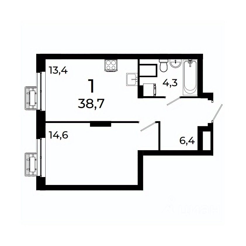 38 м² · Этаж 17 из 19