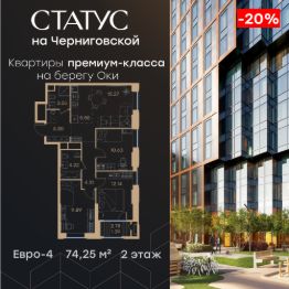 Продается 3-комн. квартира на 2-м этаже в строящемся проекте премиум-класса СТАТУС на Черниговской. Общая площадь лота составляет 74,25 кв. м, из которых 34,66 кв. м отведено под жилую и 5,55 кв. м под кухонную зону. Номер квартиры - 232.Преимущества квартиры:Прямой вид на воду - Квартиры премиум-класса у воды- Первая береговая линия. Изумительные виды на Стрелку и слияние Оки и Волги- Панорамные окна во всех квартирах- 11 минут до Кремля, 5 мин до Нижневолжской набережной- Дизайнерские лобби со вторым светом- Двухуровневый отапливаемый паркинг на 350 м\м- Приватный благоустроенный двор с видеонаблюдением только для резидентов- Современные детские площадки, зоны спокойного отдыха, зона для занятия спортом, зеленые кабинеты на свежем воздухе- Детские сады и школы в шаговой доступности- Собственный комьюнити-центр с коворкингом, детской комнатой, залом для фитнеса и кофе-поинтом.- Умный Дом и Умная Квартира- Ресторанный кластер в ЖК- Келлеры для хранения - Коммерческие помещения на 1 этаже СТАТУС на Черниговской - новый жилой комплекс премиум класса в историческом центре Нижнего Новгорода, в котором объединились лаконичность архитектурной мысли, технологичность решений и внимание к деталям, присущее всем проектам компании GloraX. Проект для рационалистов, придающих большое внимание собственному комфорту и современным технологиямСТАТУС на Черниговской - это высшая форма Нижнего Новгорода. Инновационные решения и сервисы, закрытые дворы в стилобате с уютными детскими площадками, гастро-кластер, комьюнити-центр и дизайнерские лобби здесь все создано для максимального комфорта каждого жителя. Приватное пространство внутреннего двора с тактильными тропами, с собственным садами, камерными зелеными кабинетами для работы и отдыха, детскими площадками для разных возрастов и местами для занятия спортом создает неповторимую атмосферу безмятежности и спокойствия.СТАТУС на Черниговской возвращает набережной и пространству вокруг исторический статус, привлекая тех, кто готов развиваться вместе с городом. Дорога до любимейшего променада нижегородцев Нижневолжской набережной займет всего 10 минут пешком, до ближайшей станции метро Горьковская 10 минут на автомобиле. Попасть на главную площадь города, Чкаловскую лестницу и в Кремль на машине за 11 мин? Легко! И всего 48 минут займет путь до международного аэропорта имени Чкалова, что станет неоспоримым преимуществом для тех, кто часто летает в командировки.В проекте СТАТУС на Черниговской доступен широкий выбор планировочных решений от небольших уютных студий площадью 28,3 м2 до двухуровневых квартир с террасами площадью до 188,7 м2 и потрясающими видами на Нижегородские закаты. Получить ключи и сразу переехать? Легко! Мы подготовили для вас чистовую отделку в двух стилях: в эко- минималистичном светлом и своременно-модернистском темном. Отдельной опцией можно даже дозаказать покраску стен в 4 трендовых цветах на выбор: агатовый серый, серебристо-серый, серый шелк и тонкий лен.Цена ук