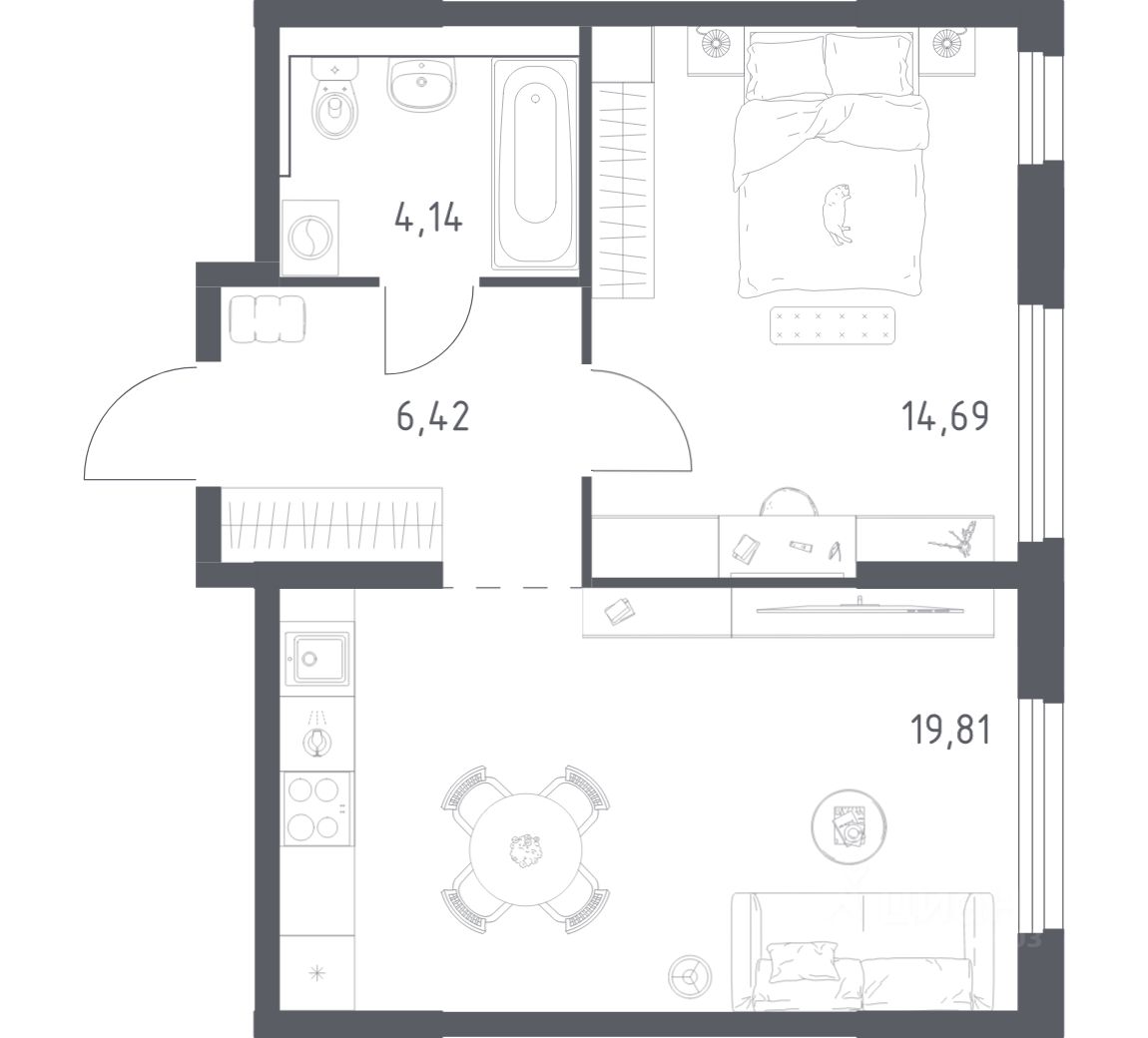 42 м² · Этаж 14 из 21