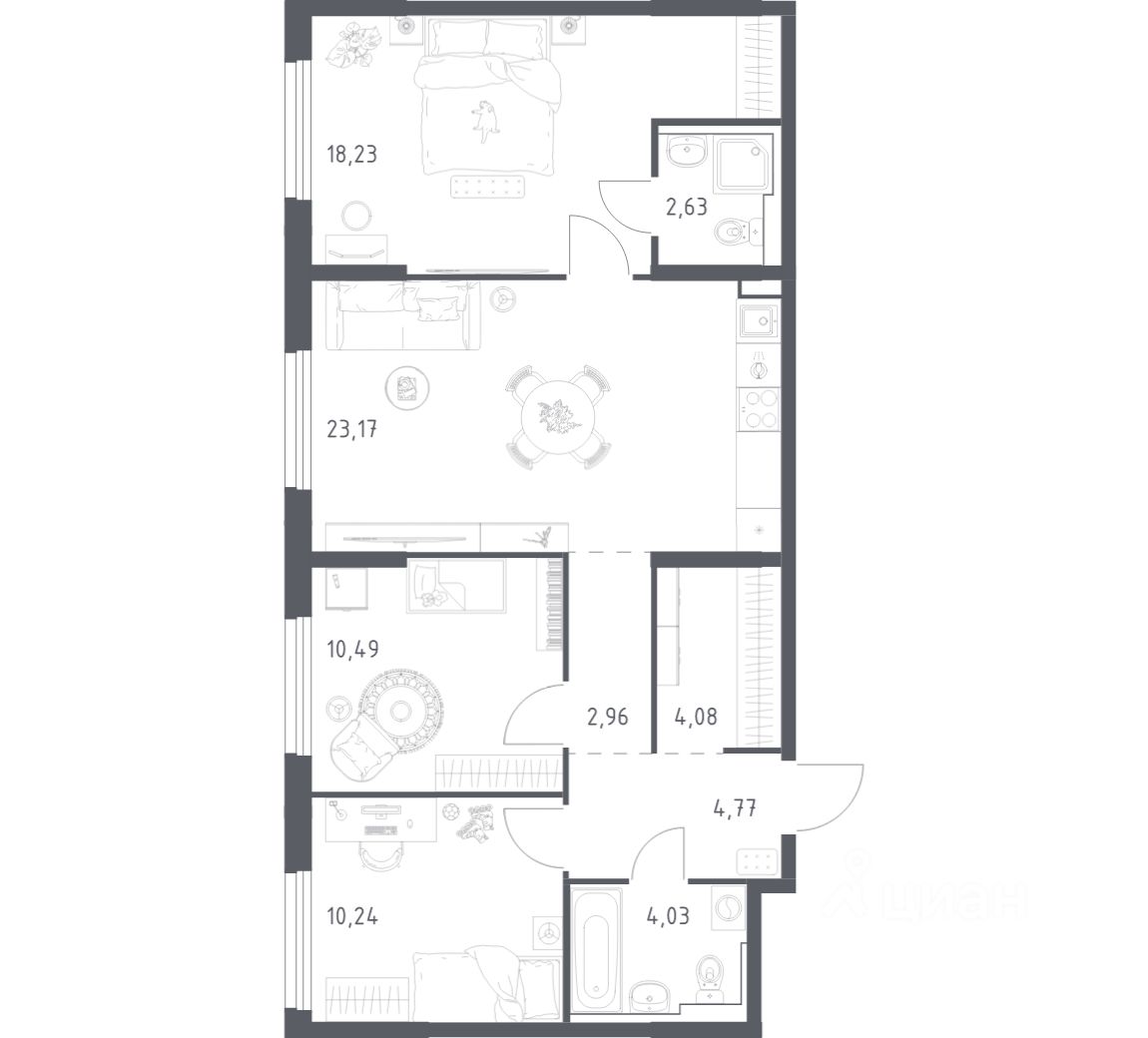 Строим кварталы для жизни с заботой о будущем. Предлагается 3-комнатная квартира комфорт-класса площадью 73.65 кв.м в корпусе 4.1КВ на 4-м этаже, в жилом комплексе ''Весна в Заречье''. Квартиры с чистовой отделкой. В варианте с готовой отделкой мы поклеили обои под покраску, постелили полы в комнатах и санузлах, выполнили отделку стен. Установили сантехнику и межкомнатные двери, провели электрику. Это лучшее соотношение цены, качества и затраченного времени. Осталось только выбрать место для обеденного стола и удобного дивана. Доступность дополнительных опций уточняйте у застройщика. Приобрести квартиры возможно по специальным акциям от застройщика, с текущими условиями акций можно ознакомиться в блоке ''Акций''. Цена динамическая и может отличаться, уточняйте актуальность у застройщика. Настало время открыть новую главу жизни любимого района. Малыши с родителями и ребята постарше торопятся в соседний детский сад или школу, над ними пролетают чайки, спешащие к Оке, а на зеленом Заречном бульваре спортсмены бегут утренний кросс. Рядом высятся 13 разноэтажных бело-серых корпуса с ''кружевными'' фасадами. Это жилой комплекс ''Весна в Заречье'', элегантный облик которого обновляет весь район. В зеленом дворе жилого квартала, который придает новое дыхание всему городу, кипит жизнь. Взрослые спешат на работу — дойти до автобусных остановок или станции метро ''Заречная'' рядом с проспектом Ленина можно всего за пару минут. По пути можно провожать ребенка на занятия в детский сад или школу прямо на территории проекта. А вечером встречаться всей семьей во дворе, играть в бадминтон на спортивной площадке, после заходить за продуктами в магазин на первом этаже и готовить самый вкусный домашний ужин. Каждый день жителей ''Весны в Заречье'' наполнен яркими эмоциями — присоединяйтесь и наслаждайтесь.