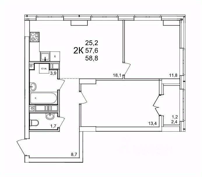 58 м² · Этаж 9 из 25