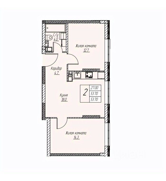 53 м² · Этаж 11 из 25