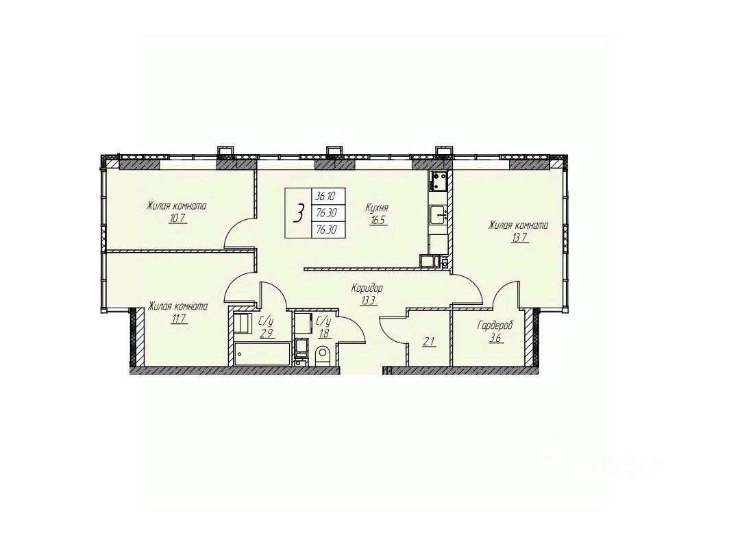 76 м² · Этаж 7 из 25