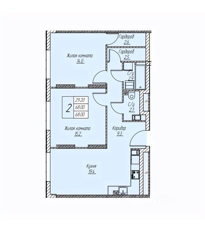 68 м² · Этаж 8 из 25