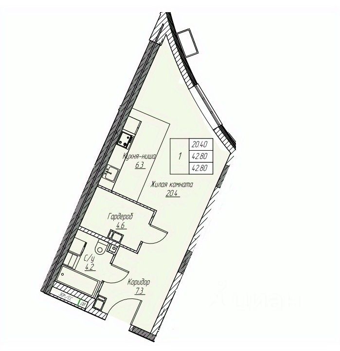 42 м² · Этаж 7 из 25