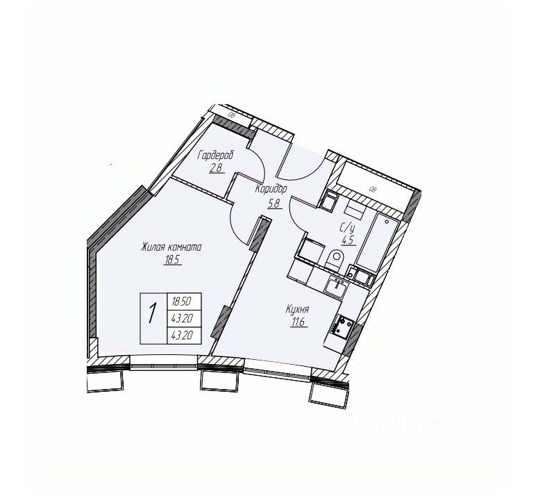 43 м² · Этаж 5 из 25