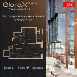 Продается 1-комн. квартира на 29-м этаже в строящемся проекте премиум-класса GloraX Premium Черниговская. Общая площадь лота составляет 39,10 кв. м, из которых 13,36 кв. м отведено под жилую и 16,21 кв. м под кухонную зону. Номер квартиры - 549.Преимущества квартиры:Прямой вид на воду - Квартиры премиум-класса у воды- Первая береговая линия. Изумительные виды на Стрелку и слияние Оки и Волги- Панорамные окна во всех квартирах- 11 минут до Кремля, 5 мин до Нижневолжской набережной- Дизайнерские лобби со вторым светом- Двухуровневый отапливаемый паркинг на 350 м\м- Приватный благоустроенный двор с видеонаблюдением только для резидентов- Современные детские площадки, зоны спокойного отдыха, зона для занятия спортом, зеленые кабинеты на свежем воздухе- Детские сады и школы в шаговой доступности- Собственный комьюнити-центр с коворкингом, детской комнатой, залом для фитнеса и кофе-поинтом.- Умный Дом и Умная Квартира- Ресторанный кластер в ЖК- Келлеры для хранения - Коммерческие помещения на 1 этаже GloraX Premium Черниговская - новый жилой комплекс премиум класса в историческом центре Нижнего Новгорода, в котором объединились лаконичность архитектурной мысли, технологичность решений и внимание к деталям, присущее всем проектам компании GloraX. Проект для рационалистов, придающих большое внимание собственному комфорту и современным технологиямGloraX Premium Черниговская это высшая форма Нижнего Новгорода. Инновационные решения и сервисы, закрытые дворы в стилобате с уютными детскими площадками, гастро-кластер, комьюнити-центр и дизайнерские лобби здесь все создано для максимального комфорта каждого жителя. Приватное пространство внутреннего двора с тактильными тропами, с собственным садами, камерными зелеными кабинетами для работы и отдыха, детскими площадками для разных возрастов и местами для занятия спортом создает неповторимую атмосферу безмятежности и спокойствия.GloraX Premium Черниговская возвращает набережной и пространству вокруг исторический статус, привлекая тех, кто готов развиваться вместе с городом. Дорога до любимейшего променада нижегородцев Нижневолжской набережной займет всего 10 минут пешком, до ближайшей станции метро Горьковская 10 минут на автомобиле. Попасть на главную площадь города, Чкаловскую лестницу и в Кремль на машине за 11 мин? Легко! И всего 48 минут займет путь до международного аэропорта имени Чкалова, что станет неоспоримым преимуществом для тех, кто часто летает в командировки.В GloraX Premium Черниговская доступен широкий выбор планировочных решений от небольших уютных студий площадью 28,3 м2 до двухуровневых квартир с террасами площадью до 188,7 м2 и потрясающими видами на Нижегородские закаты. Получить ключи и сразу переехать? Легко! Мы подготовили для вас чистовую отделку в двух стилях: в эко- минималистичном светлом и своременно-модернистском темном. Отдельной опцией можно даже дозаказать покраску стен в 4 трендовых цветах на выбор: агатовый серый, серебристо-серый, серый шелк и тон