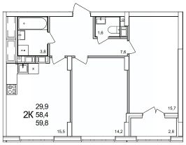 2-к, КМ Анкудиновский Парк ЖК, 50 Показать на карте