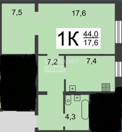 44 м2