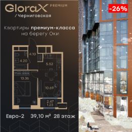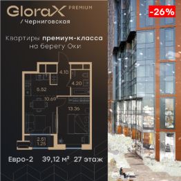 Продается 1-комн. квартира на 29-м этаже в строящемся проекте премиум-класса GloraX Premium Черниговская. Общая площадь лота составляет 39,69 кв. м, из которых 11,70 кв. м отведено под жилую и 16,18 кв. м под кухонную зону. Номер квартиры - 546.Преимущества квартиры:Гардеробная - Квартиры премиум-класса у воды- Первая береговая линия. Изумительные виды на Стрелку и слияние Оки и Волги- Панорамные окна во всех квартирах- 11 минут до Кремля, 5 мин до Нижневолжской набережной- Дизайнерские лобби со вторым светом- Двухуровневый отапливаемый паркинг на 350 м\м- Приватный благоустроенный двор с видеонаблюдением только для резидентов- Современные детские площадки, зоны спокойного отдыха, зона для занятия спортом, зеленые кабинеты на свежем воздухе- Детские сады и школы в шаговой доступности- Собственный комьюнити-центр с коворкингом, детской комнатой, залом для фитнеса и кофе-поинтом.- Умный Дом и Умная Квартира- Ресторанный кластер в ЖК- Келлеры для хранения - Коммерческие помещения на 1 этаже GloraX Premium Черниговская - новый жилой комплекс премиум класса в историческом центре Нижнего Новгорода, в котором объединились лаконичность архитектурной мысли, технологичность решений и внимание к деталям, присущее всем проектам компании GloraX. Проект для рационалистов, придающих большое внимание собственному комфорту и современным технологиямGloraX Premium Черниговская это высшая форма Нижнего Новгорода. Инновационные решения и сервисы, закрытые дворы в стилобате с уютными детскими площадками, гастро-кластер, комьюнити-центр и дизайнерские лобби здесь все создано для максимального комфорта каждого жителя. Приватное пространство внутреннего двора с тактильными тропами, с собственным садами, камерными зелеными кабинетами для работы и отдыха, детскими площадками для разных возрастов и местами для занятия спортом создает неповторимую атмосферу безмятежности и спокойствия.GloraX Premium Черниговская возвращает набережной и пространству вокруг исторический статус, привлекая тех, кто готов развиваться вместе с городом. Дорога до любимейшего променада нижегородцев Нижневолжской набережной займет всего 10 минут пешком, до ближайшей станции метро Горьковская 10 минут на автомобиле. Попасть на главную площадь города, Чкаловскую лестницу и в Кремль на машине за 11 мин? Легко! И всего 48 минут займет путь до международного аэропорта имени Чкалова, что станет неоспоримым преимуществом для тех, кто часто летает в командировки.В GloraX Premium Черниговская доступен широкий выбор планировочных решений от небольших уютных студий площадью 28,3 м2 до двухуровневых квартир с террасами площадью до 188,7 м2 и потрясающими видами на Нижегородские закаты. Получить ключи и сразу переехать? Легко! Мы подготовили для вас чистовую отделку в двух стилях: в эко- минималистичном светлом и своременно-модернистском темном. Отдельной опцией можно даже дозаказать покраску стен в 4 трендовых цветах на выбор: агатовый серый, серебристо-серый, серый шелк и тонкий лен