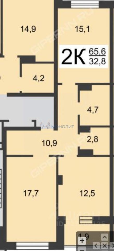 57 м² · Этаж 15 из 19