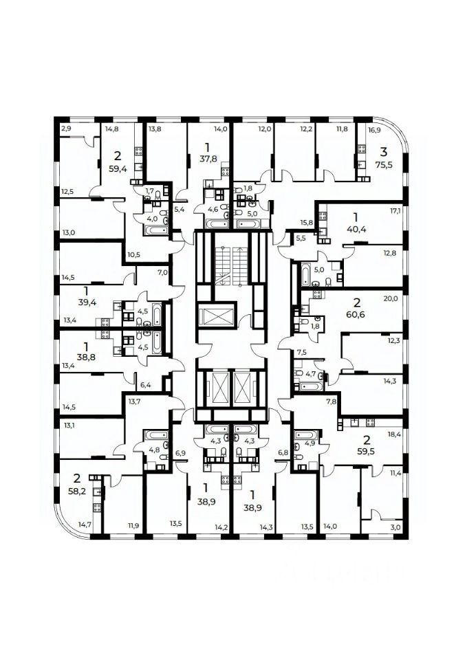 75 м² · Этаж 9 из 19