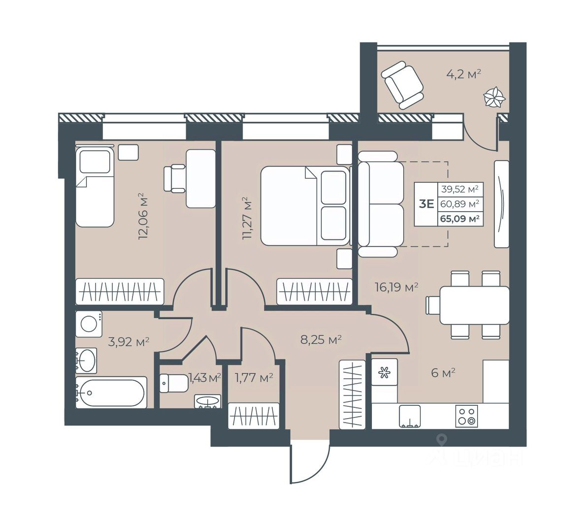 65 м² · Этаж 3 из 8