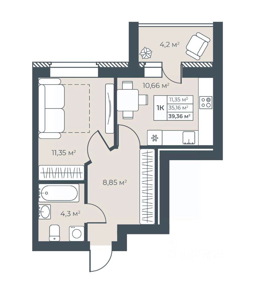 39 м² · Этаж 6 из 8