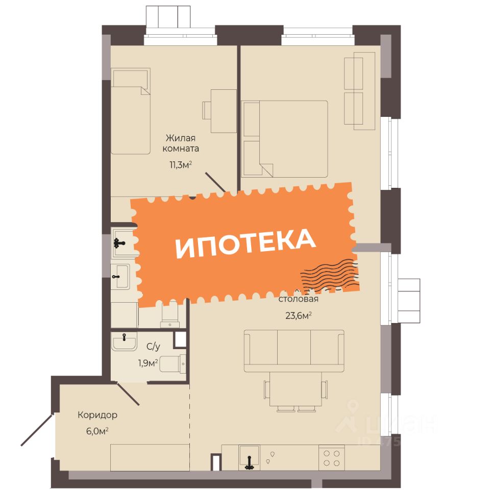 44 м2