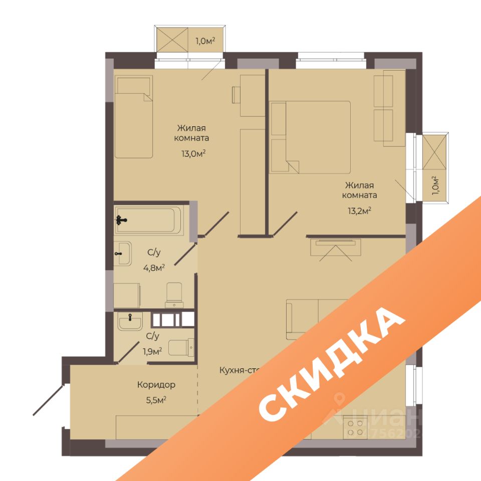 43 м² · Этаж 2 из 10