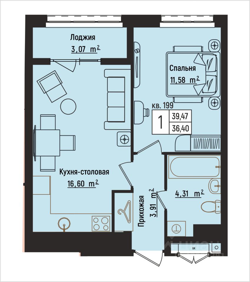39 м² · Этаж 9 из 15