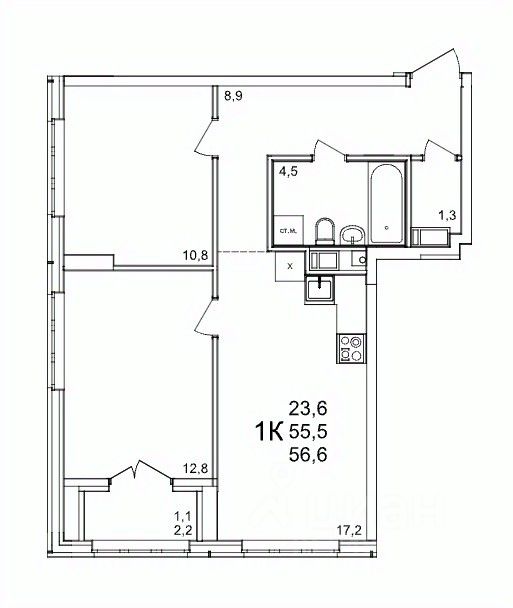 Продаётся 2-комнатная квартира в строящемся доме (53), срок сдачи: III-кв. 2027, общей площадью 56.6 кв.м., на 10 этаже. Расположение, транспортная доступность Жилой комплекс ''КМ Анкудиновский парк'' - это микрорайон, в состав которого входит 27 монолитно-кирпичных домов эконом-класса высотой 19-35 этажей, а также разнообразная инфраструктура. Жилой массив размещается на территории площадью 50 гектаров. Комплекс находится за пределами Нижнего Новгорода, в Кстовском районе, около деревни Анкудиновка. Город рядом - до него всего 6 километров. Без пробок до центральной части Нижнего Новгорода от комплекса можно добраться всего за двадцать минут. Поблизости находится улица Ларина, по которой можно быстро выехать на проспект Гагарина, ведущий в центр города. Специально для улучшения транспортной ситуации застройщик организовал рядом с корпусами микрорайона автобусные остановки, поэтому добраться до города можно будет быстро и тем, кто не пользуется личным автотранспортом. В десяти минутах ходьбы от комплекса находится железнодорожная платформа ''Анкудиновка'', от которой можно за час с небольшим доехать до Московского вокзала Нижнего Новгорода. Инфраструктура Собственная инфраструктура микрорайона ''КМ Анкудиновский парк'' включает в себя: несколько детских садов, общеобразовательную школу, бизнес-центр, торговый и физкультурно-оздоровительный комплексы. На первых этажах зданий располагаются офисные и коммерческие помещения. В посёлке Анкудиновка инфраструктуры не очень много, но в деревне Федяково (до которой от новостройки можно доехать за десять минут) работает крупный торговый центр ''Мега'' с гипермаркетами ''Ашан'', IKEA и OBI. По улице Ларина можно быстро доехать до центральной части Нижнего Новгорода, где расположено большое количество магазинов и торговых центров. Одно из главных достоинств ЖК ''КМ Анкудиновский парк'' - это экологичность места, в котором он располагается. По соседству находится огромный Анкудиновский парк (в честь которого назван комплекс) и Ботанический сад, где собрано множество редких растений (с мая по октябрь в саду работает Дендрарий с тропическими и субтропическими растениями). Недалеко располагается несколько лесных озёр и лесопарк ''Щёлковский хутор'', на территории которого есть Музей архитектуры и быта народов нижегородского Поволжья. Все крупные транспортные магистрали находятся на безопасном для качества воздуха расстоянии от микрорайона. У жителей ''Анкудиновского парка'' есть уникальная возможность жить за городом, в хороших экологических условиях, на свежем воздухе, и, в то же время, рядом с городом и всей необходимой инфраструктурой. Надёжность застройщика Жилой комплекс ''КМ Анкудиновский парк'' - это проект группы компаний ''Каркас Монолит'', которая начала свою деятельность на рынке недвижимости в 2000 году. В соответствии с названием, компания специализируется на монолитной строительной технологии, реализуя проекты как в сфере элитной недвижимости, так и в сфере жилья эконом-класса. Во всех своих проектах ГК