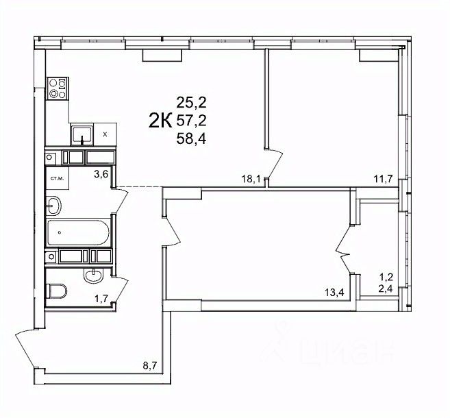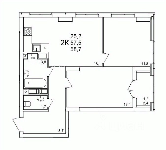 58 м² · Этаж 13 из 25