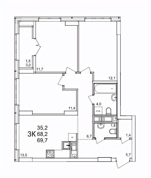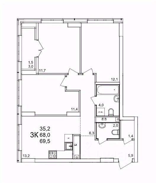 Продаётся 3-комнатная квартира в строящемся доме (53), срок сдачи: III-кв. 2027, общей площадью 69.7 кв.м., на 3 этаже. Расположение, транспортная доступность Жилой комплекс ''КМ Анкудиновский парк'' - это микрорайон, в состав которого входит 27 монолитно-кирпичных домов эконом-класса высотой 19-35 этажей, а также разнообразная инфраструктура. Жилой массив размещается на территории площадью 50 гектаров. Комплекс находится за пределами Нижнего Новгорода, в Кстовском районе, около деревни Анкудиновка. Город рядом - до него всего 6 километров. Без пробок до центральной части Нижнего Новгорода от комплекса можно добраться всего за двадцать минут. Поблизости находится улица Ларина, по которой можно быстро выехать на проспект Гагарина, ведущий в центр города. Специально для улучшения транспортной ситуации застройщик организовал рядом с корпусами микрорайона автобусные остановки, поэтому добраться до города можно будет быстро и тем, кто не пользуется личным автотранспортом. В десяти минутах ходьбы от комплекса находится железнодорожная платформа ''Анкудиновка'', от которой можно за час с небольшим доехать до Московского вокзала Нижнего Новгорода. Инфраструктура Собственная инфраструктура микрорайона ''КМ Анкудиновский парк'' включает в себя: несколько детских садов, общеобразовательную школу, бизнес-центр, торговый и физкультурно-оздоровительный комплексы. На первых этажах зданий располагаются офисные и коммерческие помещения. В посёлке Анкудиновка инфраструктуры не очень много, но в деревне Федяково (до которой от новостройки можно доехать за десять минут) работает крупный торговый центр ''Мега'' с гипермаркетами ''Ашан'', IKEA и OBI. По улице Ларина можно быстро доехать до центральной части Нижнего Новгорода, где расположено большое количество магазинов и торговых центров. Одно из главных достоинств ЖК ''КМ Анкудиновский парк'' - это экологичность места, в котором он располагается. По соседству находится огромный Анкудиновский парк (в честь которого назван комплекс) и Ботанический сад, где собрано множество редких растений (с мая по октябрь в саду работает Дендрарий с тропическими и субтропическими растениями). Недалеко располагается несколько лесных озёр и лесопарк ''Щёлковский хутор'', на территории которого есть Музей архитектуры и быта народов нижегородского Поволжья. Все крупные транспортные магистрали находятся на безопасном для качества воздуха расстоянии от микрорайона. У жителей ''Анкудиновского парка'' есть уникальная возможность жить за городом, в хороших экологических условиях, на свежем воздухе, и, в то же время, рядом с городом и всей необходимой инфраструктурой. Надёжность застройщика Жилой комплекс ''КМ Анкудиновский парк'' - это проект группы компаний ''Каркас Монолит'', которая начала свою деятельность на рынке недвижимости в 2000 году. В соответствии с названием, компания специализируется на монолитной строительной технологии, реализуя проекты как в сфере элитной недвижимости, так и в сфере жилья эконом-класса. Во всех своих проектах ГК