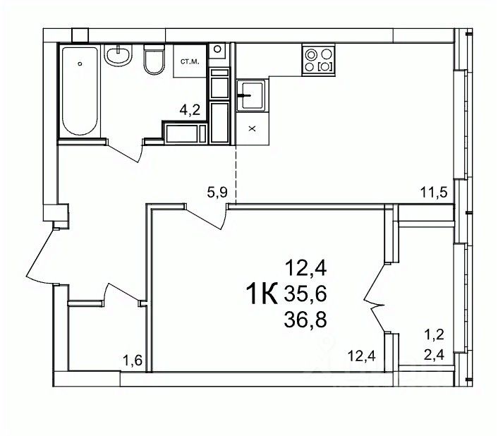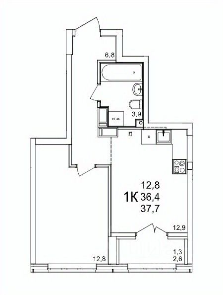 37 м² · Этаж 12 из 25
