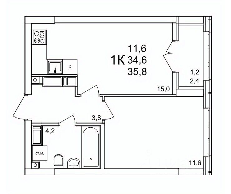 Продаётся 1-комнатная квартира в строящемся доме (53), срок сдачи: III-кв. 2027, общей площадью 35.8 кв.м., на 18 этаже. Расположение, транспортная доступность Жилой комплекс ''КМ Анкудиновский парк'' - это микрорайон, в состав которого входит 27 монолитно-кирпичных домов эконом-класса высотой 19-35 этажей, а также разнообразная инфраструктура. Жилой массив размещается на территории площадью 50 гектаров. Комплекс находится за пределами Нижнего Новгорода, в Кстовском районе, около деревни Анкудиновка. Город рядом - до него всего 6 километров. Без пробок до центральной части Нижнего Новгорода от комплекса можно добраться всего за двадцать минут. Поблизости находится улица Ларина, по которой можно быстро выехать на проспект Гагарина, ведущий в центр города. Специально для улучшения транспортной ситуации застройщик организовал рядом с корпусами микрорайона автобусные остановки, поэтому добраться до города можно будет быстро и тем, кто не пользуется личным автотранспортом. В десяти минутах ходьбы от комплекса находится железнодорожная платформа ''Анкудиновка'', от которой можно за час с небольшим доехать до Московского вокзала Нижнего Новгорода. Инфраструктура Собственная инфраструктура микрорайона ''КМ Анкудиновский парк'' включает в себя: несколько детских садов, общеобразовательную школу, бизнес-центр, торговый и физкультурно-оздоровительный комплексы. На первых этажах зданий располагаются офисные и коммерческие помещения. В посёлке Анкудиновка инфраструктуры не очень много, но в деревне Федяково (до которой от новостройки можно доехать за десять минут) работает крупный торговый центр ''Мега'' с гипермаркетами ''Ашан'', IKEA и OBI. По улице Ларина можно быстро доехать до центральной части Нижнего Новгорода, где расположено большое количество магазинов и торговых центров. Одно из главных достоинств ЖК ''КМ Анкудиновский парк'' - это экологичность места, в котором он располагается. По соседству находится огромный Анкудиновский парк (в честь которого назван комплекс) и Ботанический сад, где собрано множество редких растений (с мая по октябрь в саду работает Дендрарий с тропическими и субтропическими растениями). Недалеко располагается несколько лесных озёр и лесопарк ''Щёлковский хутор'', на территории которого есть Музей архитектуры и быта народов нижегородского Поволжья. Все крупные транспортные магистрали находятся на безопасном для качества воздуха расстоянии от микрорайона. У жителей ''Анкудиновского парка'' есть уникальная возможность жить за городом, в хороших экологических условиях, на свежем воздухе, и, в то же время, рядом с городом и всей необходимой инфраструктурой. Надёжность застройщика Жилой комплекс ''КМ Анкудиновский парк'' - это проект группы компаний ''Каркас Монолит'', которая начала свою деятельность на рынке недвижимости в 2000 году. В соответствии с названием, компания специализируется на монолитной строительной технологии, реализуя проекты как в сфере элитной недвижимости, так и в сфере жилья эконом-класса. Во всех своих проектах ГК
