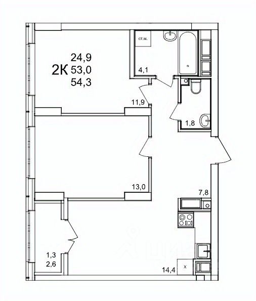 54 м² · Этаж 9 из 25