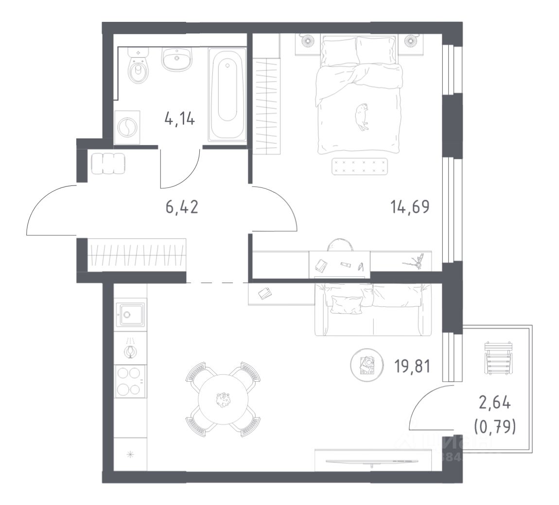42 м² · Этаж 14 из 21