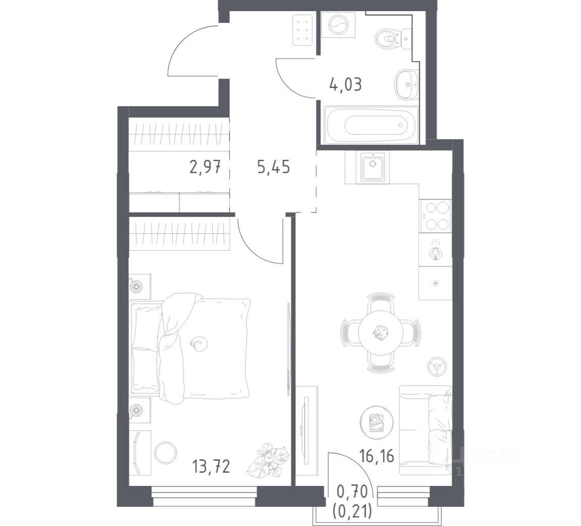 42 м² · Этаж 16 из 21