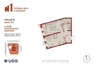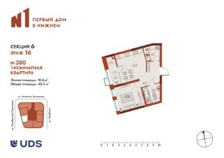 Компактная и вместительная двухкомнатная квартира в 25-этажной секции ЖК ''N1 Первый дом в Нижнем''Особенности планировки: Площадь 55,9м² Большая кухня-гостиная 20,4м² Функциональная спальня 16,2м² с выходом на теплую лоджию и в гардеробную Живите в географическом центре города, в минуте от метро Чкаловская. Гуляйте каждый день в парке им.1 Мая. Создавайте квартиру своей мечты в современном доме бизнес-класса!