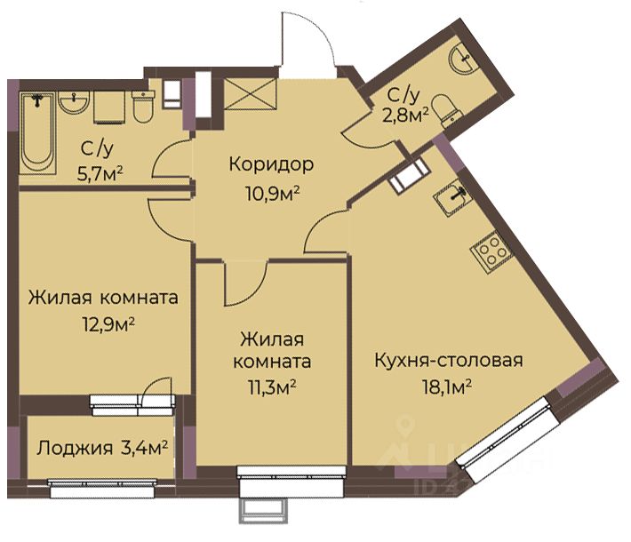 57 м² · Этаж 2 из 12