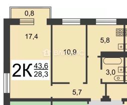 2-к квартира Показать на карте